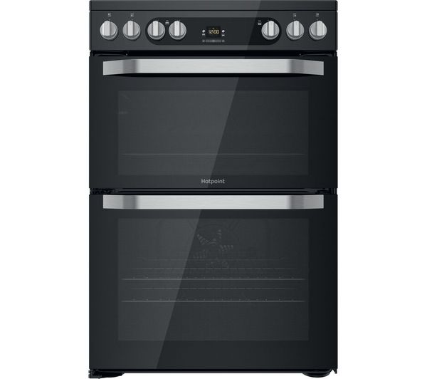 HOTPOINT HDM67V9HCX 60 cm Electric Ceramic Cooker - Black, 90 x 60 x 60 cm (H x W x D), Two electric ovens / Integrated electric grills, 4-zone electric ceramic hob, Main oven cleaning: Assisted cleaning, Large capacity oven