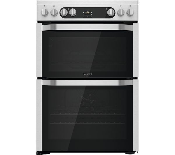 HOTPOINT Multiflow HDM67V9HCX 60 cm Electric Ceramic Cooker - Inox, 90 x 60 x 60 cm (H x W x D), Two electric ovens / Integrated electric grills, 4-zone electric ceramic hob, Main oven cleaning: Catalytic liners, Large capacity oven