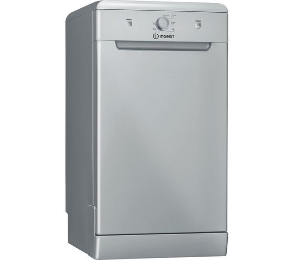 INDESIT DF9E 1B10 S UK Slimline Dishwasher - Silver, Ideal for smaller households (9 place settings), Energy rating: F, Save energy with the eco-cycle