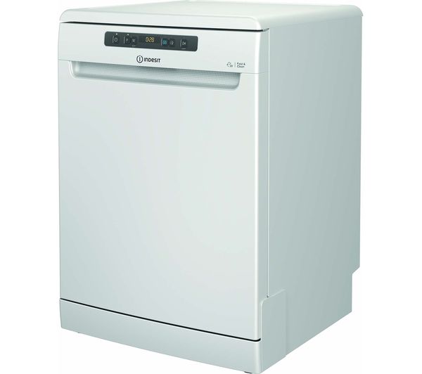 INDESIT DFO 3T133 F UK Full-size Dishwasher - White, Ideal for medium-sized households (14 place settings), Energy rating: D, Quick wash: 28 minutes, The third rack means you can fit more in, Save energy with the eco-cycle, Door opens at the end of the cycle for quick drying