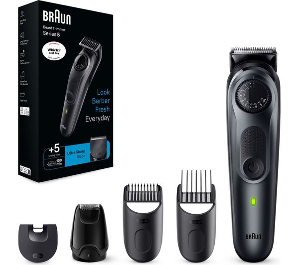 BRAUN Series 5 BT5420 Beard Trimmer - Black, Cordless, Water washable, 40 positions, Includes: 4 attachments & storage pouch, 2 year guarantee