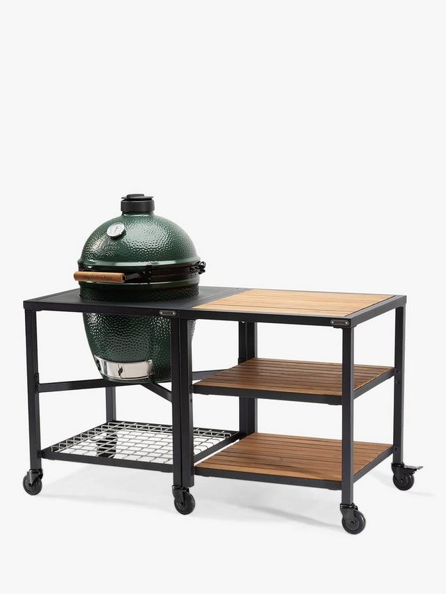 This version comes with a metal stand or 'nest', with the Egg sitting perfectly in the middle, plus an adjoining acacia wood expansion table for food preparation. Both stands have handy shelves underneath for barbecue equipment. The stands have caster wheels for easy moving and wheel locks to secure them into position. The included cover gives protection when the Egg and table are not in use.