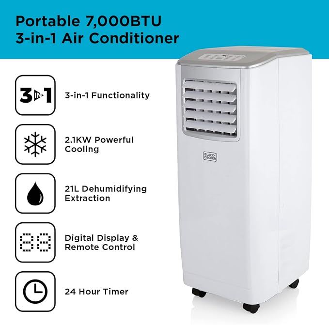 BLACK+DECKER BXAC40005GB Portable 7000 BTU 3-in-1 Air Conditioner, Dehumidifier