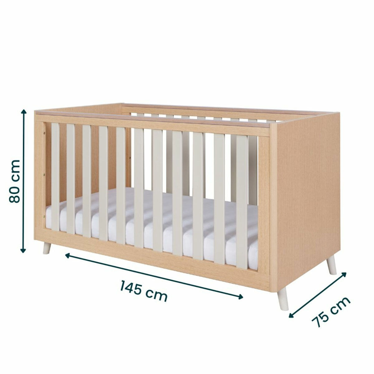 The Tutti Bambini Fika Cot Bed harmoniously blends contemporary simplicity and functionality, drawing inspiration from Scandinavian design. Crafted with child-friendly in mind, it boasts cut corners, clean lines, and elegant legs, all finished with non-toxic paints and contrasting textures. It also features detachable teething rails to protect baby's gentle gums.