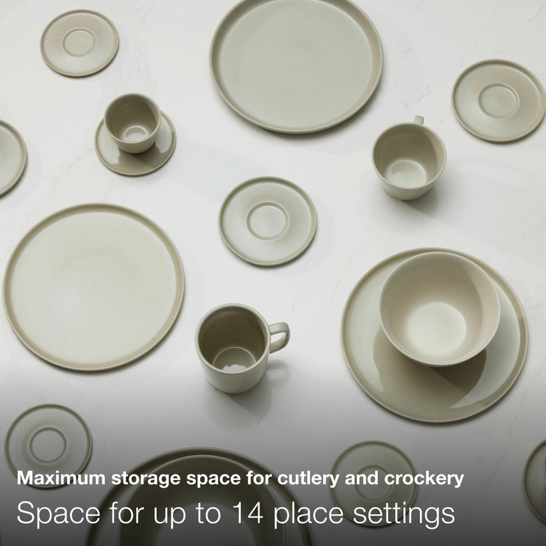 Perfect results in less than one hour - Quick Power Wash QuickPowerWash. An unbeatable combination: the QuickPowerWash programme and the perfectly tailored All in 1 UltraTabs achieve the best possible cleaning and drying results on normally soiled crockery in 58 minutes, just like the PowerDisk. These specially developed tabs only take 2–3 minutes to dissolve. This means that the cleaning performance begins right at the start of the wash cycle. Completely dry – Miele AutoOpen drying AutoOpen drying. The dishwasher door opens automatically at the end of the programme cycle and leaves a small gap. With the assistance of the fan, the warm moist air is transported out of the wash cabinet, allowing even challenging load items such as plastic bowls to dry completely. Special air ducting protects your worktop from moisture. Very easy door opening and closing – Comfort Close The best door concept of our time. Experience how easily the Miele door opens and closes. Convenient: The door remains in the position of your choice Convenient, great results and perfect for everyday use – Extra Comfort baskets With many extras. The ExtraComfort basket design includes the following features: 3D cutlery tray or optional cutlery basket, basket handles, height-adjustable upper basket, fixed row of spikes in the upper basket, MultiComfort area in the lower basket, 2 rows of spikes in the lower basket, and 2 height-adjustable holders for glasses in the lower basket