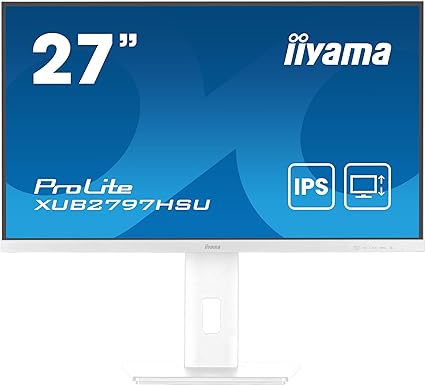 Iiyama XUB2797HSU-W2 27 inch IPS white bezel, 100Hz, 1ms (MPRT), 1920x1080, HDMI/DP, 2 x USB, Height Adjustable Stand, TCO09 & TUV-GS, 5 Yr Warranty