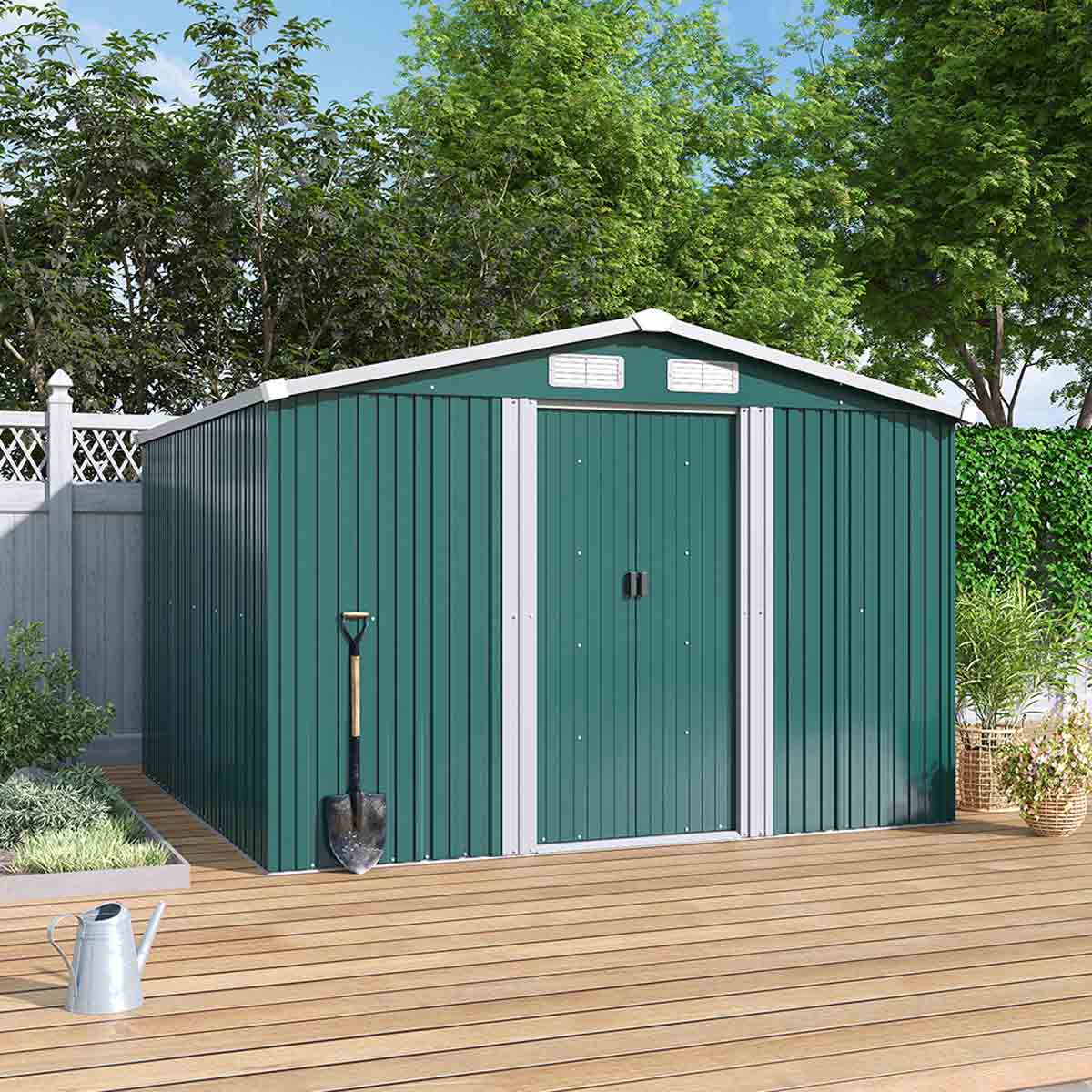 Garden Sanctuary 8x8ft Large Metal Garden Tool Storage Shed, Green