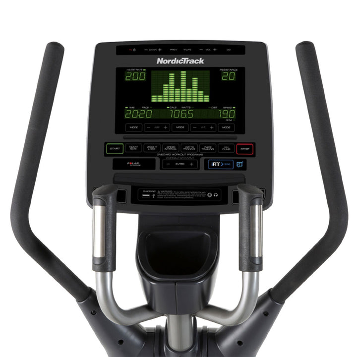The Nordic Track e8.9b Elliptical comes with a simplified console that can be upgraded with the addition of a smart device. Sync the iFIT®-compatible machine with a smart device and the elliptical will match the resistance to recreate the actual route on the screen. The ellipticals' foot placement makes the run, walk or ski easier on the knees, joints and back. Soft touch upper body grips helps users to hold on to something more comfortable so that there is less strain on the hands. The rear mobility wheels allow for users to easily move the equipment around their designated space.