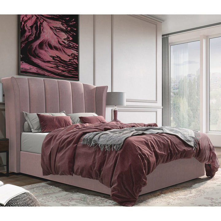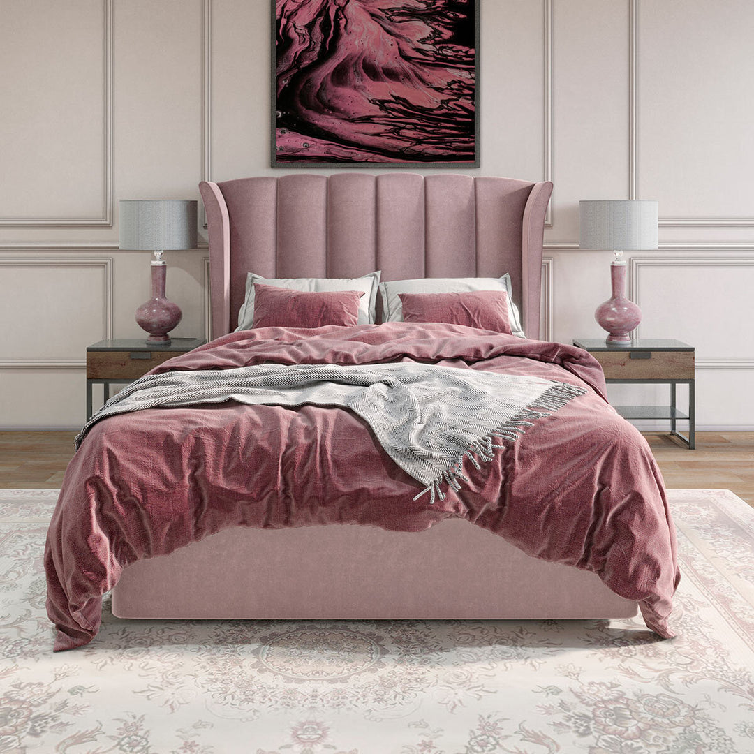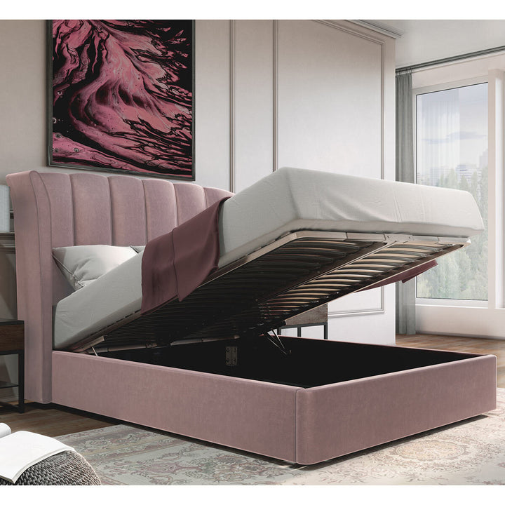 Isabella Pink Velvet Ottoman Bed Frame King Size