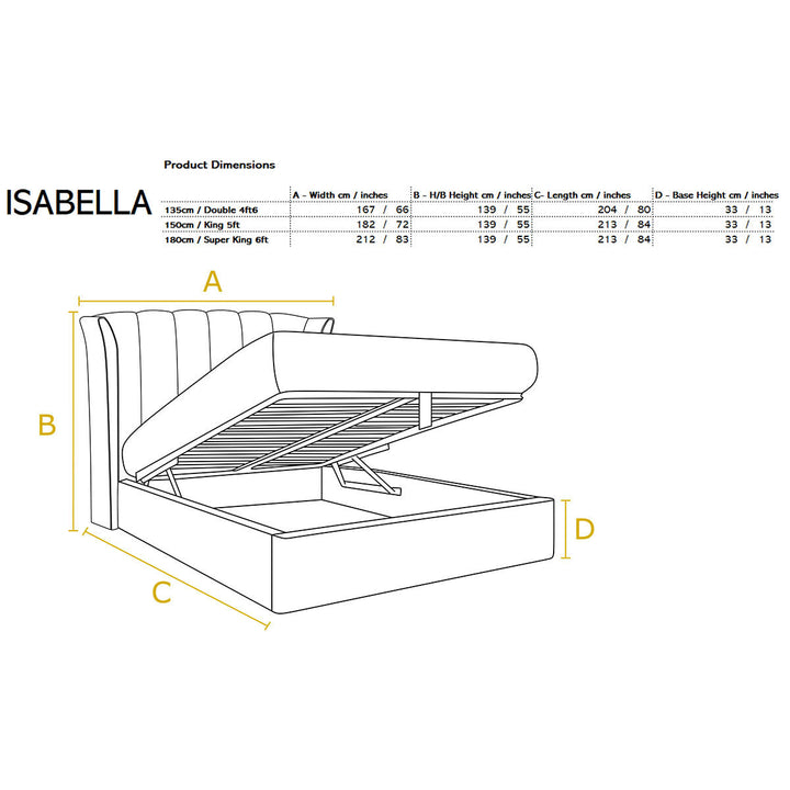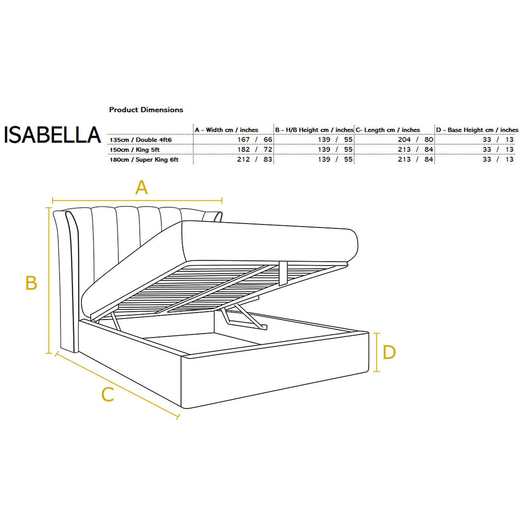 Handmade in the UK, the Isabella ottoman bed frame effortlessly combines both design and function. The ottoman base lifts for easy access to the storage underneath, helping you to maximise your bedroom storage space. It is fully upholstered in a soft and durable velvet and features a wind design with a deep fluted headboard that will create a beautiful centrepiece in any bedroom.
