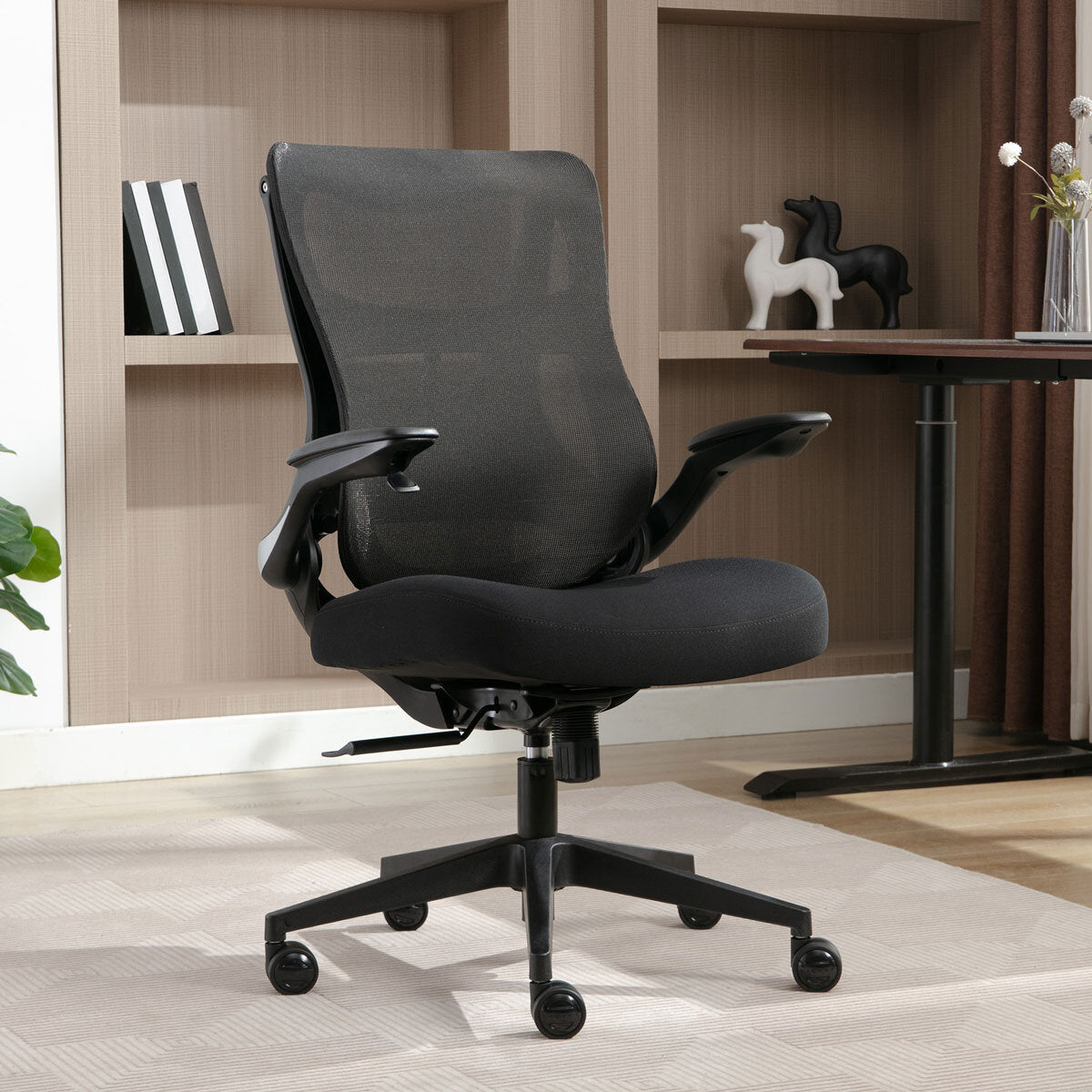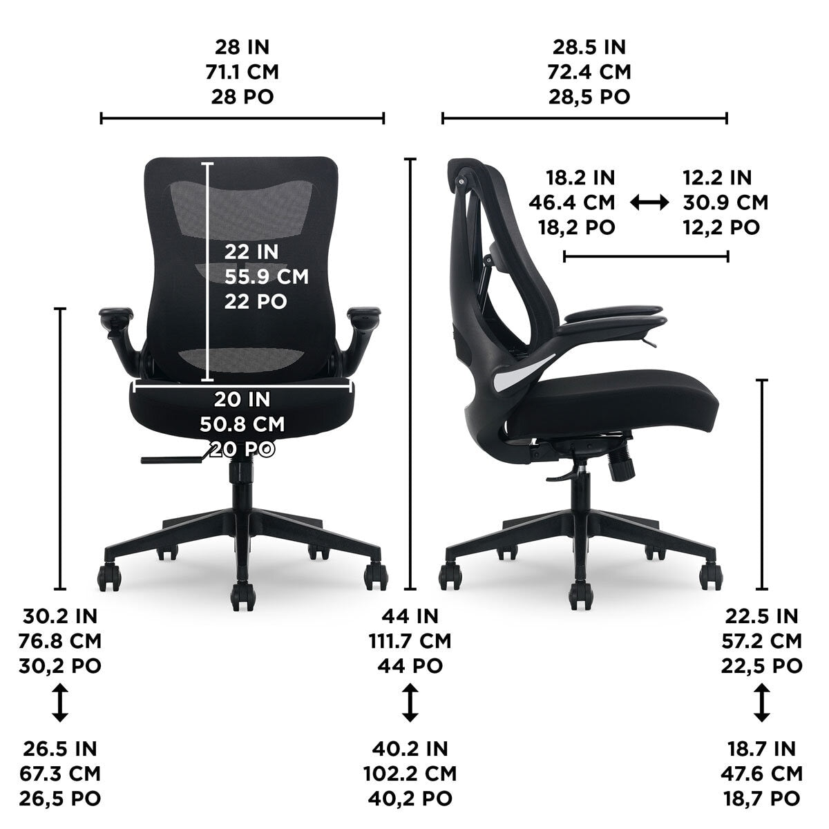 - Flip-up arms provide ultimate support while remaining sleek and easy to tuck away