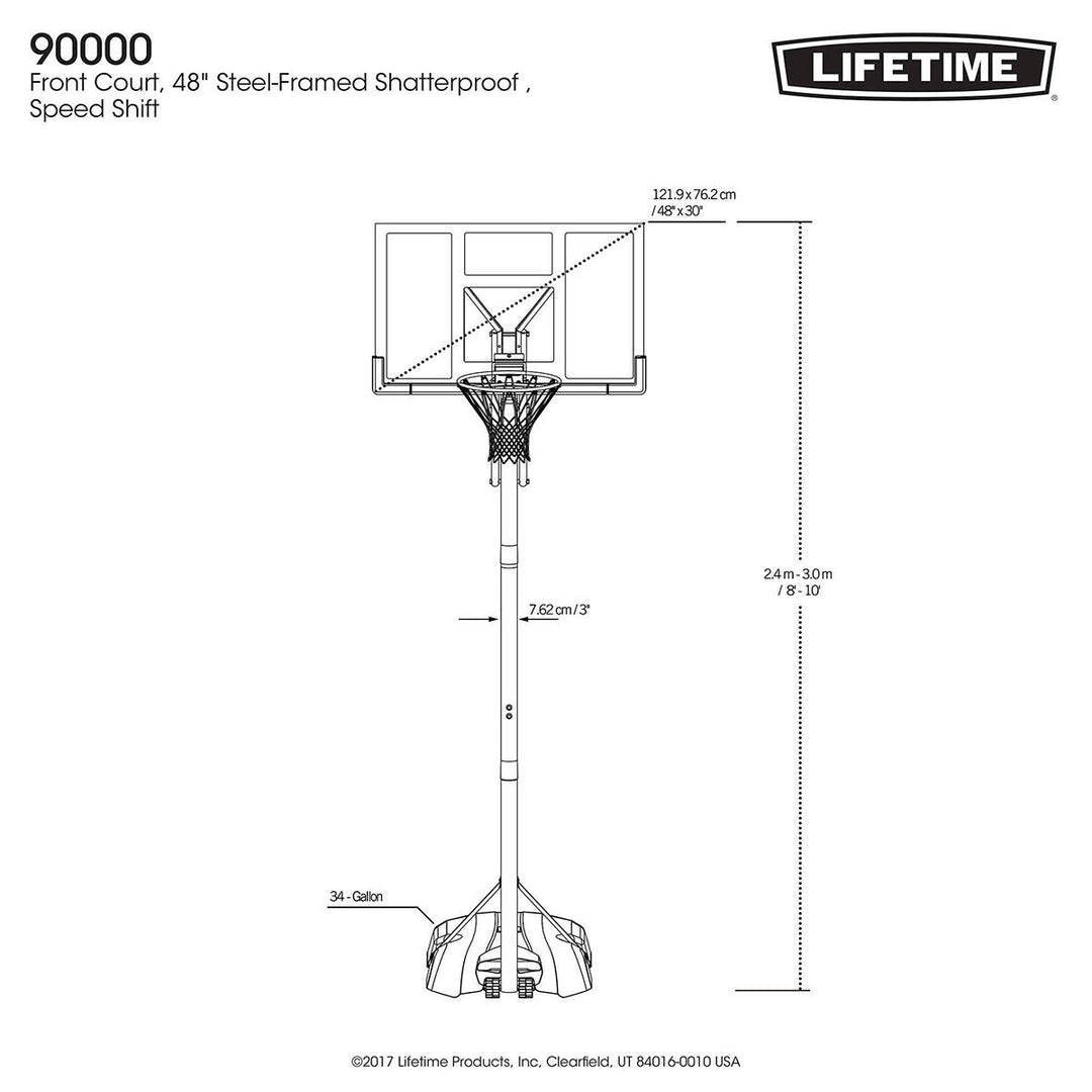 This Lifetime 48 inch basketball hoop has a fully portable design, so you can start playing a game with friends and family just about anywhere. It includes a slam-it rim with double compression springs and an all-weather nylon net. The speed shift height adjustment mechanism uses counter-balance springs to easily adjust it from 8 ft to 10 ft with the pull of a handle. The steel-framed shatter-proof backboard will take on your toughest of shots!