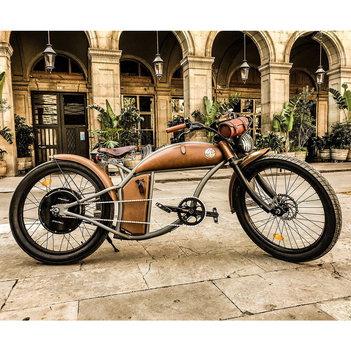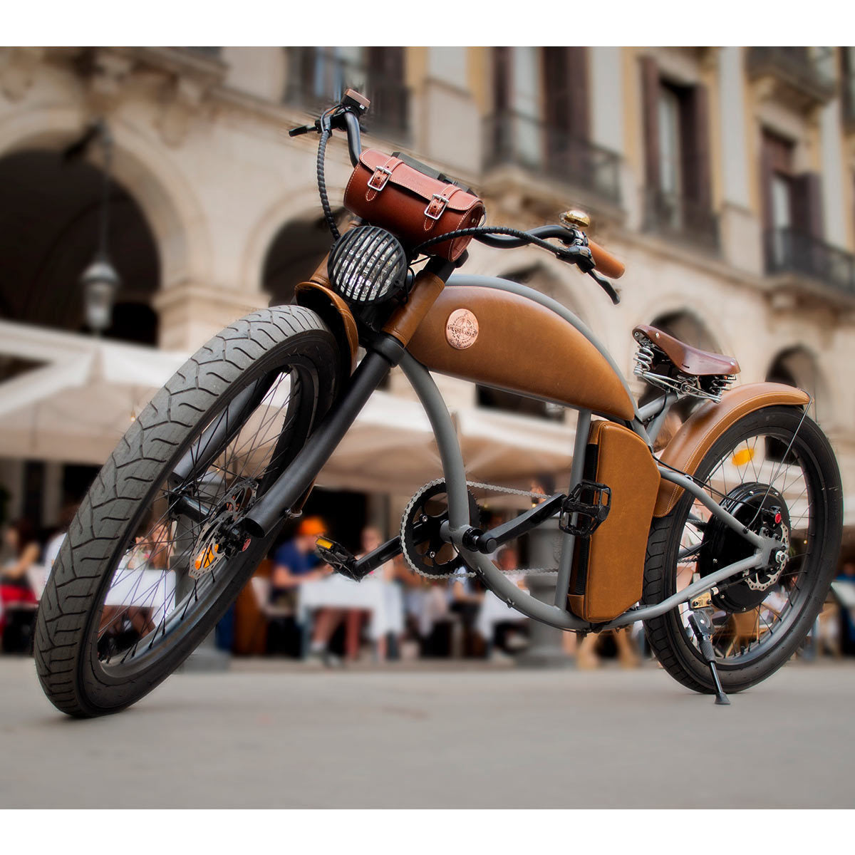 The Rayvolt Cruzer V3 arrives already assembled therefore you can begin your new adventures immediately. Included with the Cruzer are retro style front and rear lights, retro left and right rear view mirrors as well as a front leather bag.