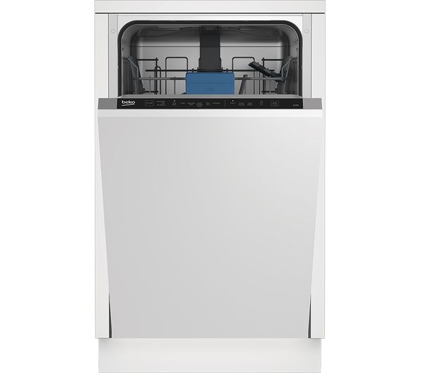 BEKO Pro DIS16R10 Slimline Fully Integrated Dishwasher, 81.8 x 44.8 x 55 cm (H x W x D), Ideal for smaller households (10 place settings), Energy rating: E, Quick wash: 30 minutes, Save energy with the eco-cycle, 2 year guarantee