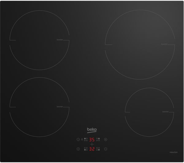 BEKO Pro HII64400MT 58 cm Electric Induction Hob - Black, 5.2 x 58 x 51 cm (H x W x D), 4 zones, Front-mounted touch controls, Boost function, Timer, 2 year guarantee