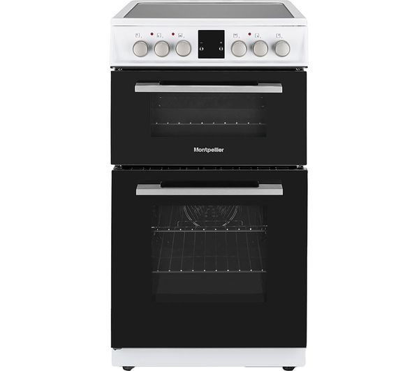 MONTPELLIER MDOC50FW 50 cm Electric Ceramic Cooker - White, 90 x 50 x 60 cm (H x W x D), Two electric ovens / Integrated electric grill, 4-zone electric ceramic hob, Main oven cleaning: Catalytic liners, 2 year guarantee