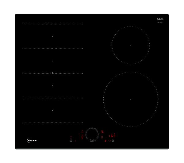 NEFF N70 T66FHE4L0 60 cm Electric Induction Smart Hob - Black, 5.1 x 59.2 x 52.2 cm (H x W x D), 4 zones, Front-mounted touch controls, Boost function, Timer, 2 year guarantee