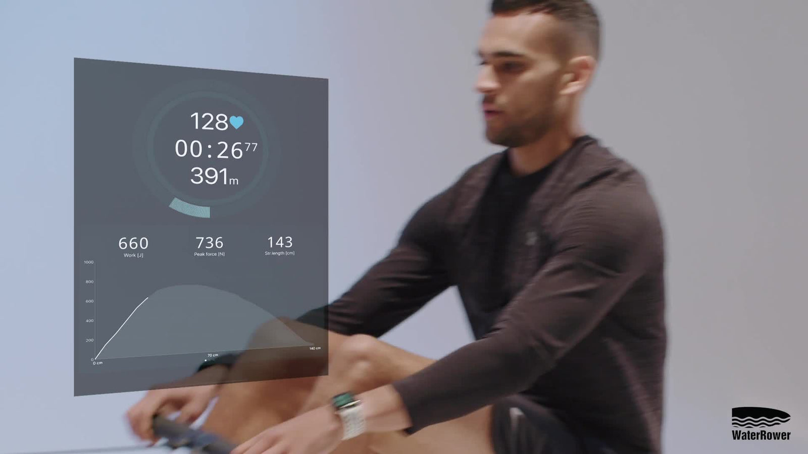 Unlike other rowing machines, the water flywheel also makes resistance self-regulating; there is no need for artificial adjustment. The result: fluid rowing and an aesthetically mirrored experience that matches the feel, sound, and body benefits of rowing on the river.