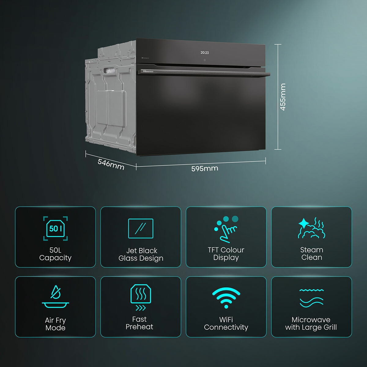 Hisense Hi8 BlackLine BIM4AH8UKWF Built In Electric Single Oven with Microwave, in Jet Black