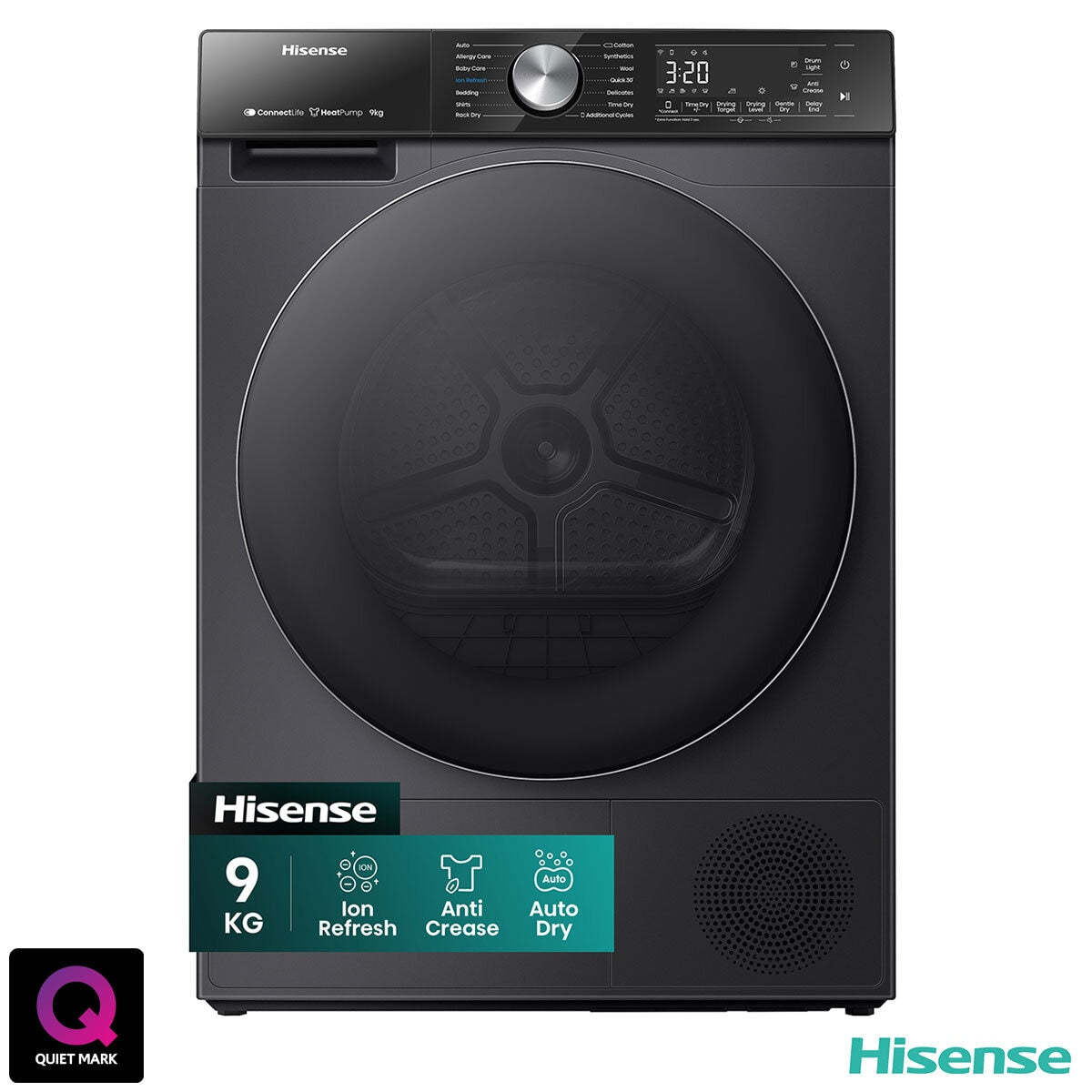 Hisense DH5S902BB, 9kg Heat Pump Dryer, A+++ Rated in Black