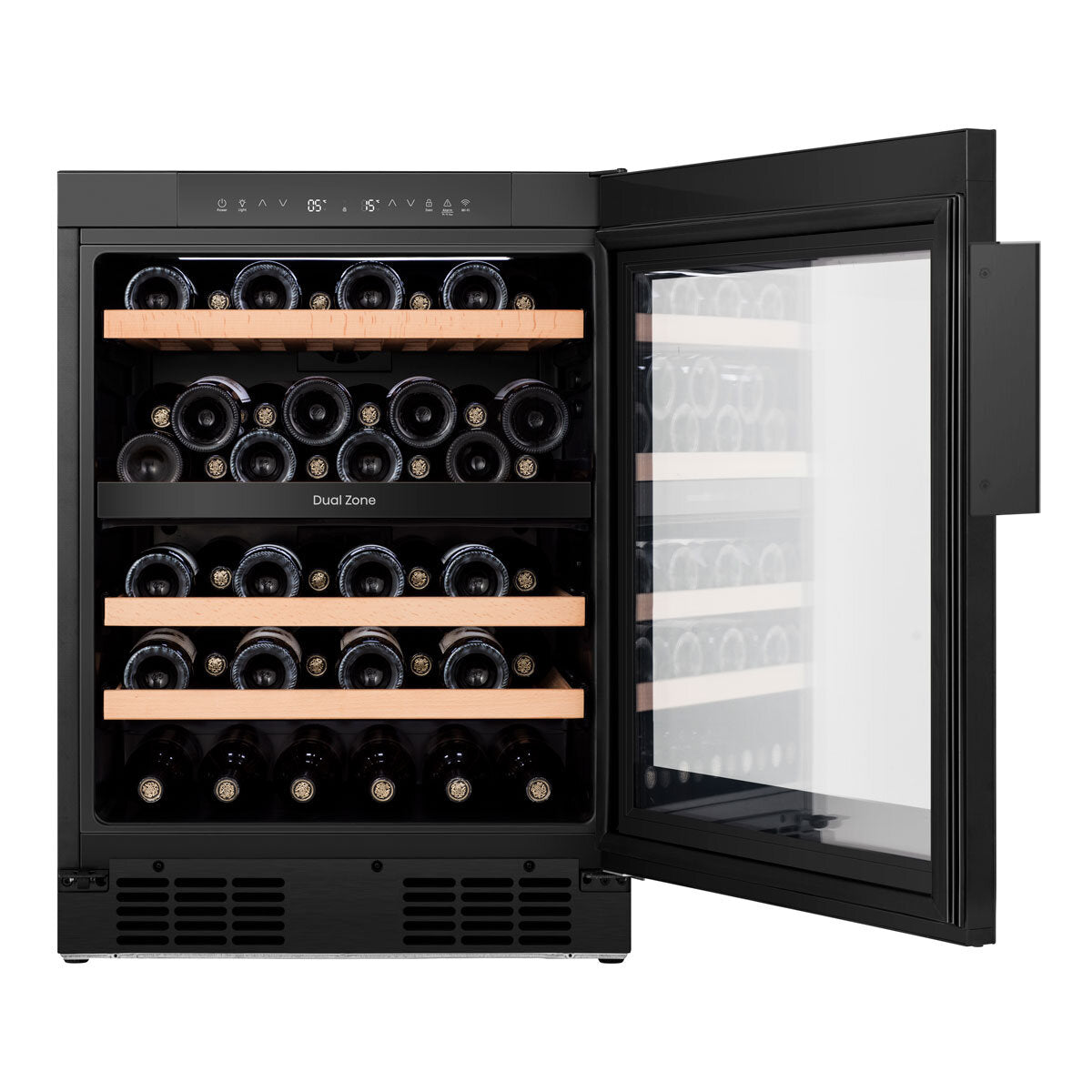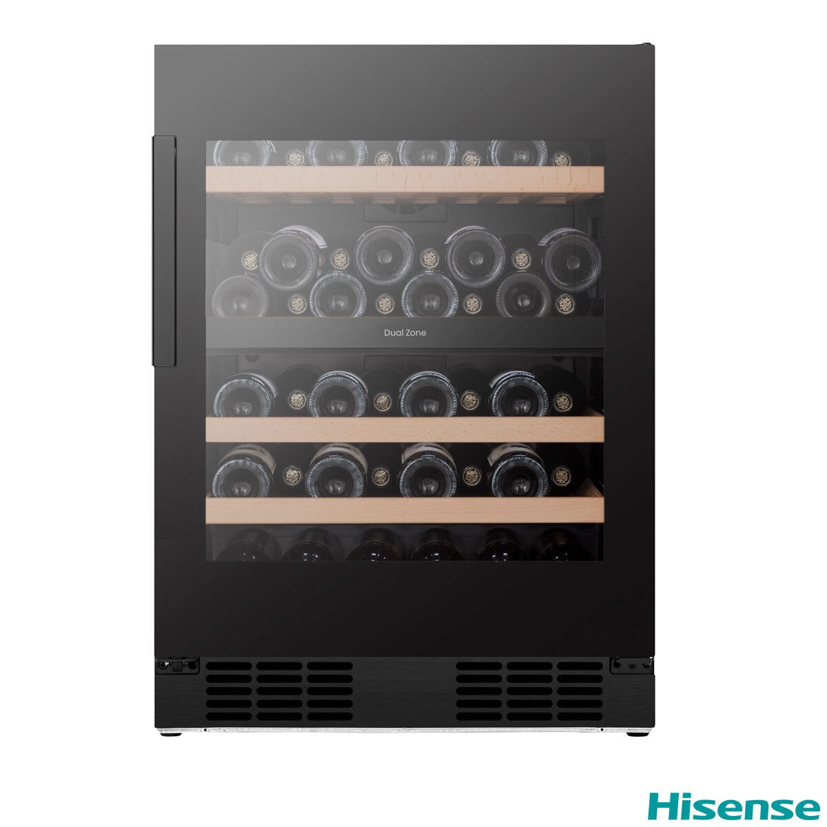 Hisense RW3N122GSLF, 46 Bottle Freestanding, Dual Zone Wine Cooler in Black