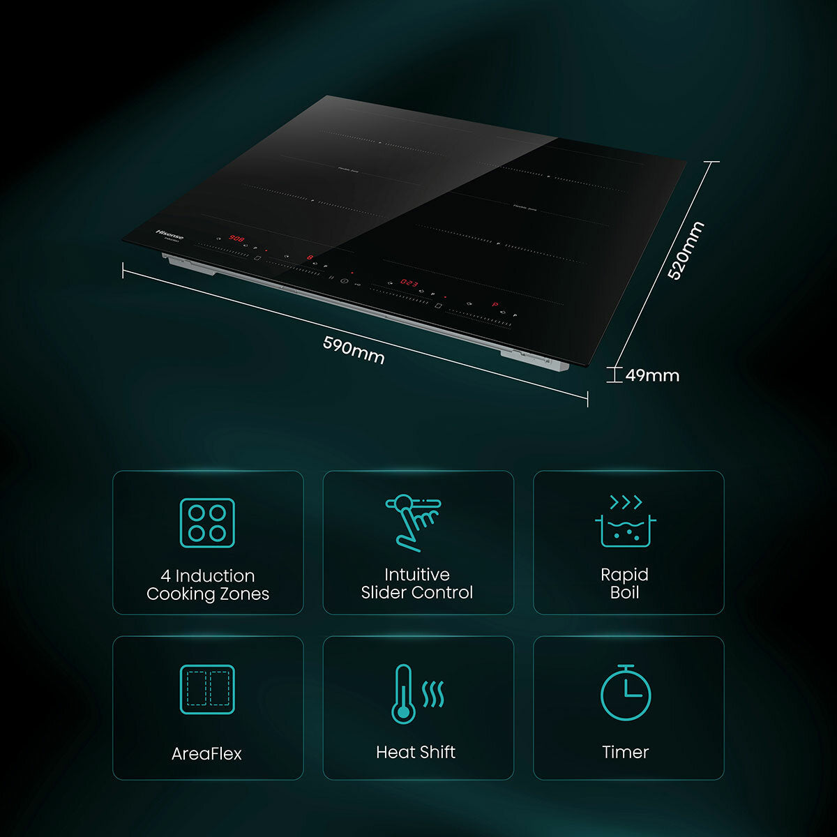 Hisense Hi8 HI6443BSCWF 60cm Induction Hob with Area Flex, in Black