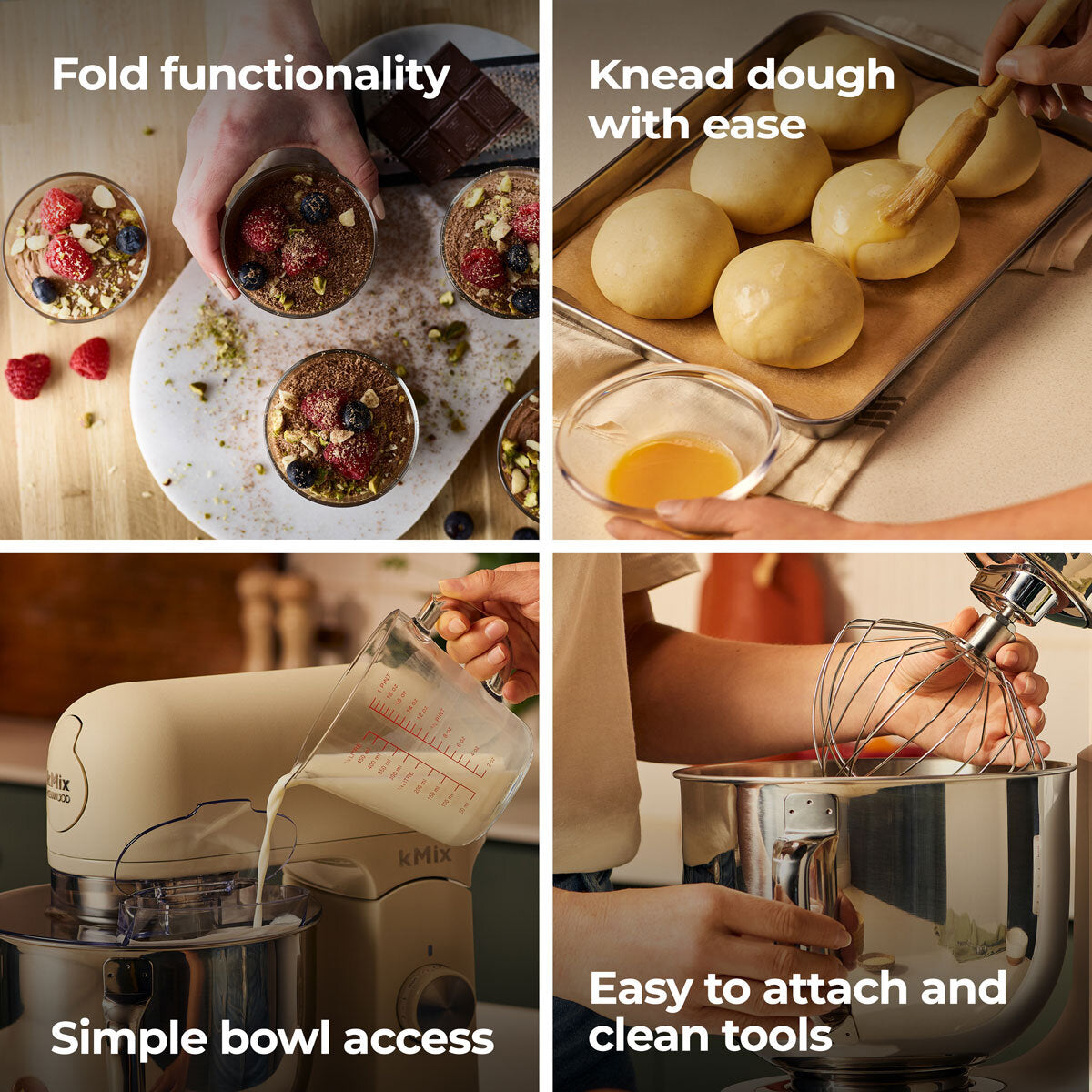 Boasting a 1000w motor, coupled with an innovative 6 sensitive speed options, which automatically builds up rotational speed without causing the spillage of ingredients, the kMix offers the perfect combination of power and control.