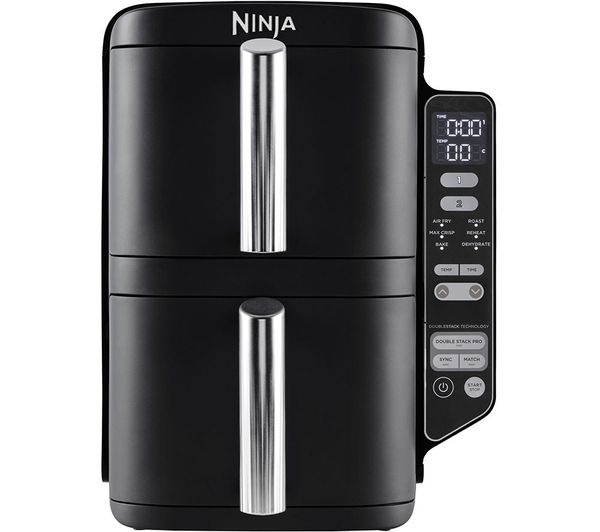 NINJA Double Stack SL300UK Air Fryer - Black, Capacity: 7.2 litres, Dual baskets, 6 preset functions, 2 independent cooking zones, Set both zones to finish cooking at the same time, Dishwasher safe parts, Non-slip feet, 2 year guarantee