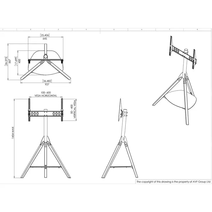 The AVF Hoxton Tripod TV Stand balances a sophisticated minimal look with exceptional strength and stability. Suitable for 32 to 65 inch screens weighing up to 40kg, the stand utilises a clever laid back design to ensure weight is positioned centrally, making Hoxton completely free-standing and allowing it to be positioned virtually anywhere. It features three wooden legs with a single tempered safety glass shelf for media devices of up to 5kg.