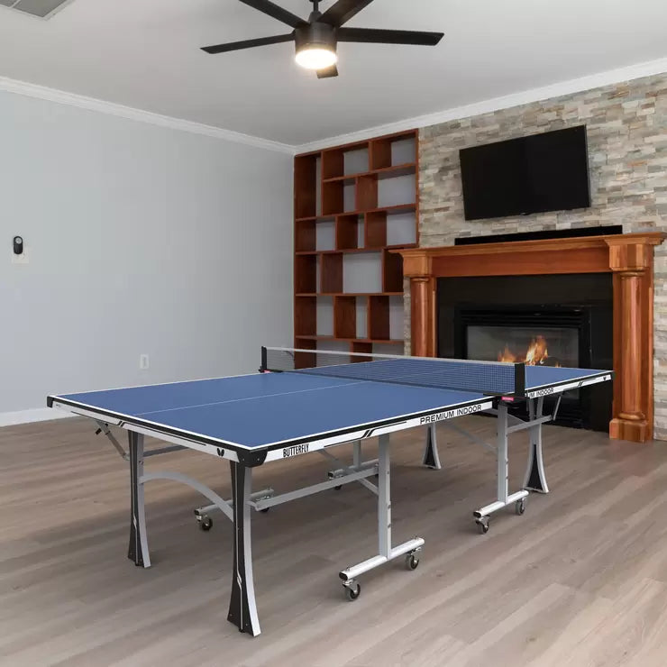 The Butterfly Premium Indoor Table Tennis Table offers a 16mm playing top surface, good bounce and an 8-wheel system with economic storage and lighter rollaway benefits. This table is ideal for schools and home use. It divides into 2 halves which makes the movement and storage simple and easy. It also includes a Butterfly Clip net and post set.