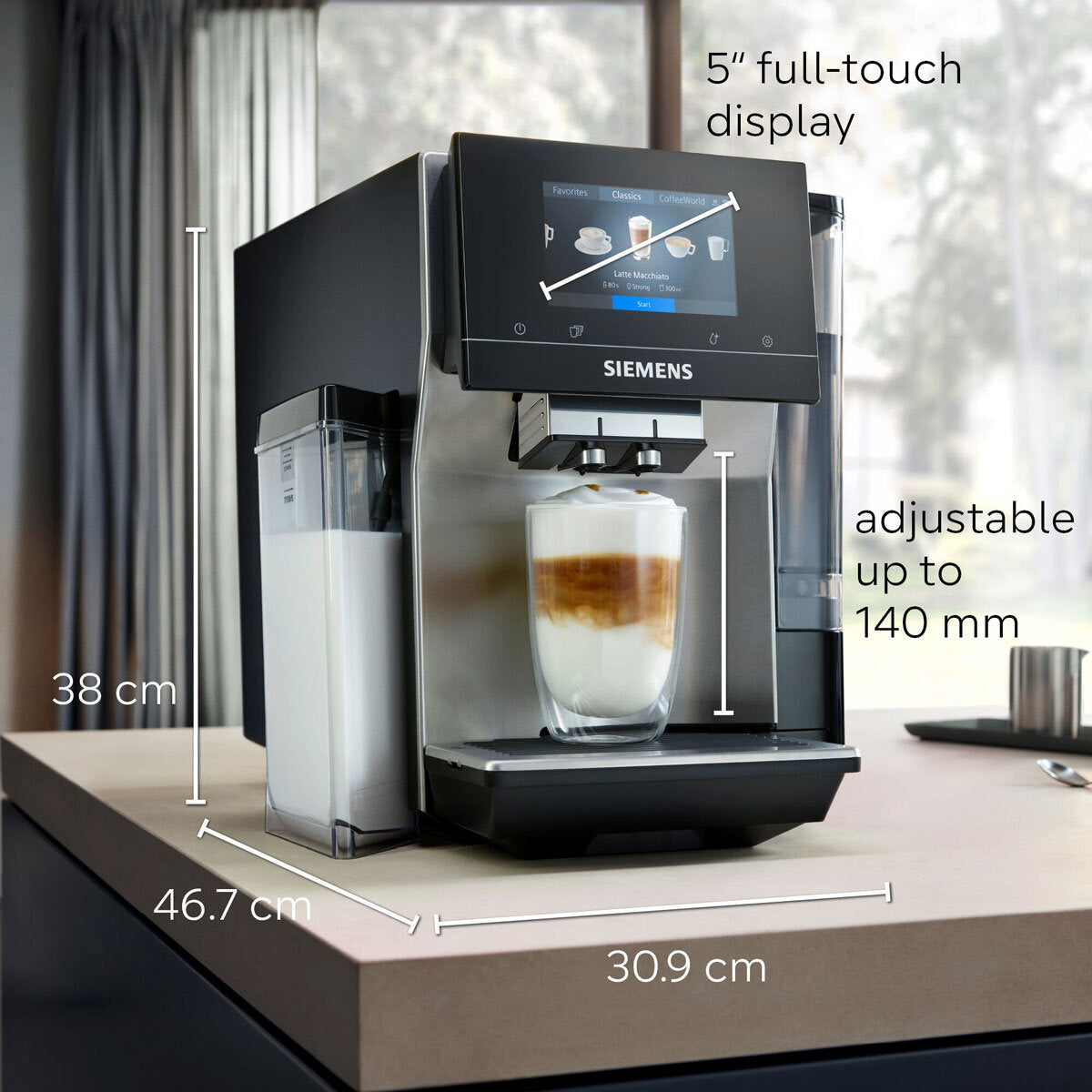 Indulge in the ultimate coffee experience with the Siemens TQ717GB3 Fully Automatic Coffee Machine. Crafted with precision and elegance, this stainless steel marvel combines advanced technology with impeccable design to deliver barista-quality coffee right at home.
