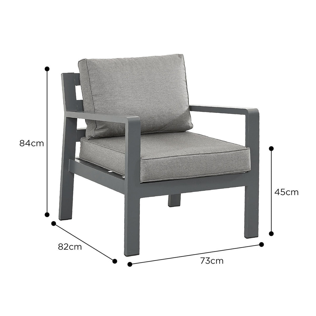 Combining comfort with practicality, this contemporary lounge and dining set is a versatile addition to any outdoor space. Comprising of a large five-seater corner sofa, chair and sofa, there’s plenty of room to either lounge out and relax or to entertain friends and family.