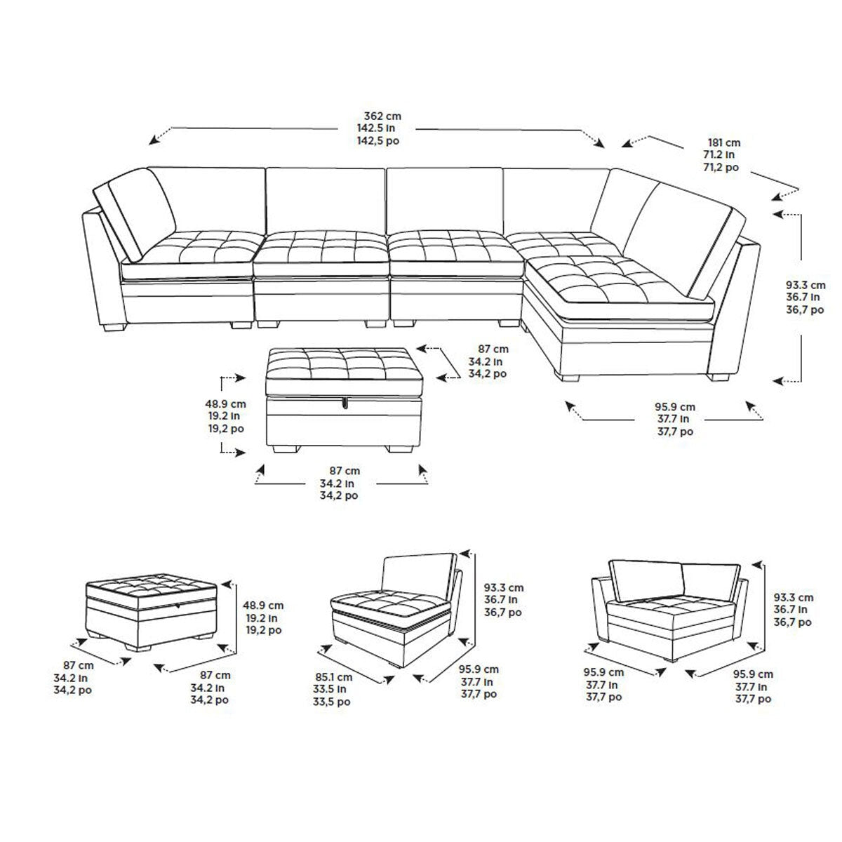 - Storage ottoman can be utilised as a chaise for lounging or additional seating