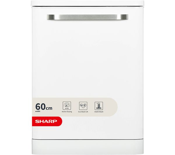 SHARP QW-DX41F47EW Full-size Dishwasher - White, 85 x 59.8 x 59.8 cm (H x W x D), Ideal for medium-sized households (13 place settings), Energy rating: E, Quick wash: 30 minutes, Save energy with the eco-cycle, 2 year guarantee