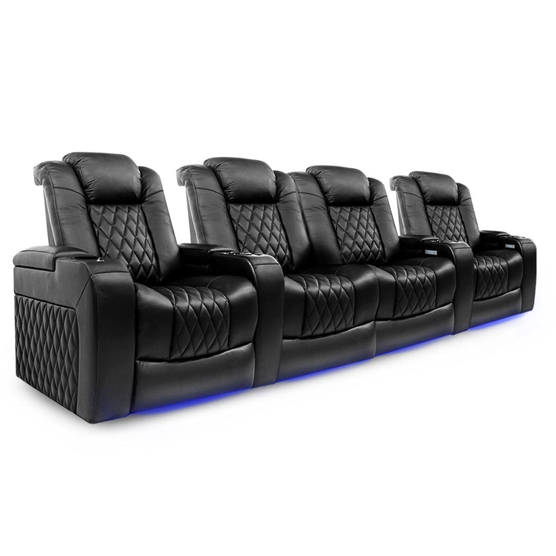 Valencia Tuscany Row of 4 Black Leather Power Reclining Home Theatre Seating with Sofa Centre