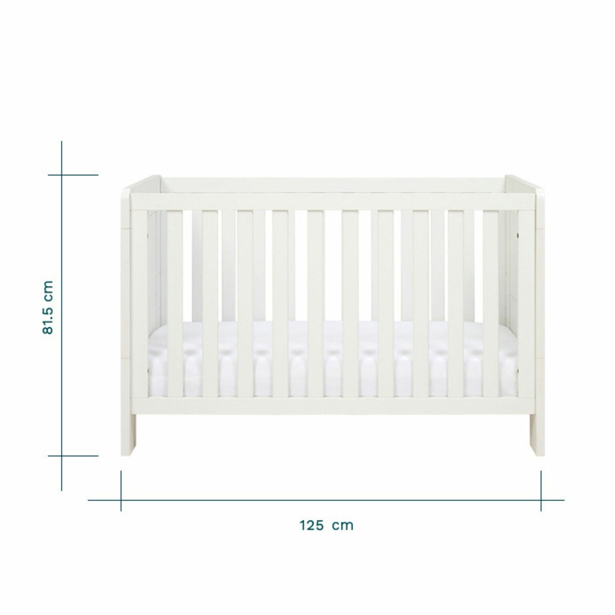 The Alba Mini Cot Bed combines modern design with space-saving functionality, perfect for smaller nurseries. It is designed to adapt as your baby grows and features three adjustable mattress height positions and can easily convert into a toddler bed. Compact yet practical, this cot bed offers a cosy sleep space for your little one, making it an ideal choice for a stylish and functional nursery.
