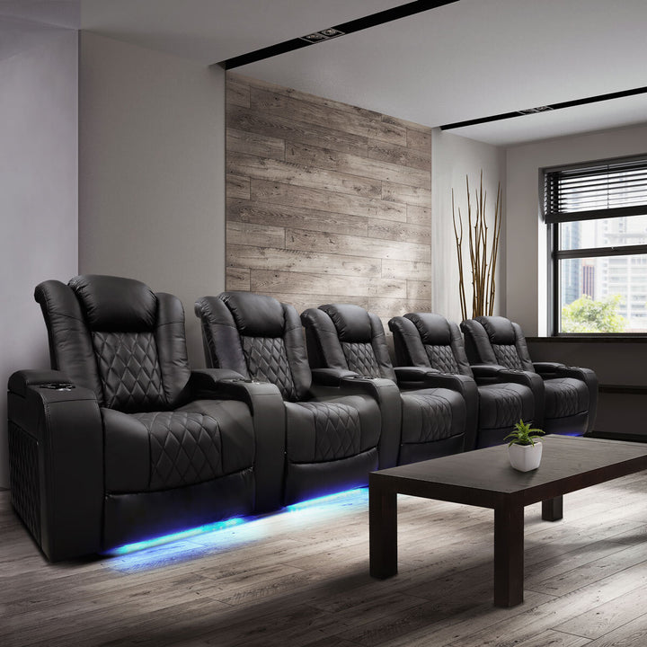 Valencia Tuscany Row of 5 Black Leather Power Reclining Home Theatre Seating